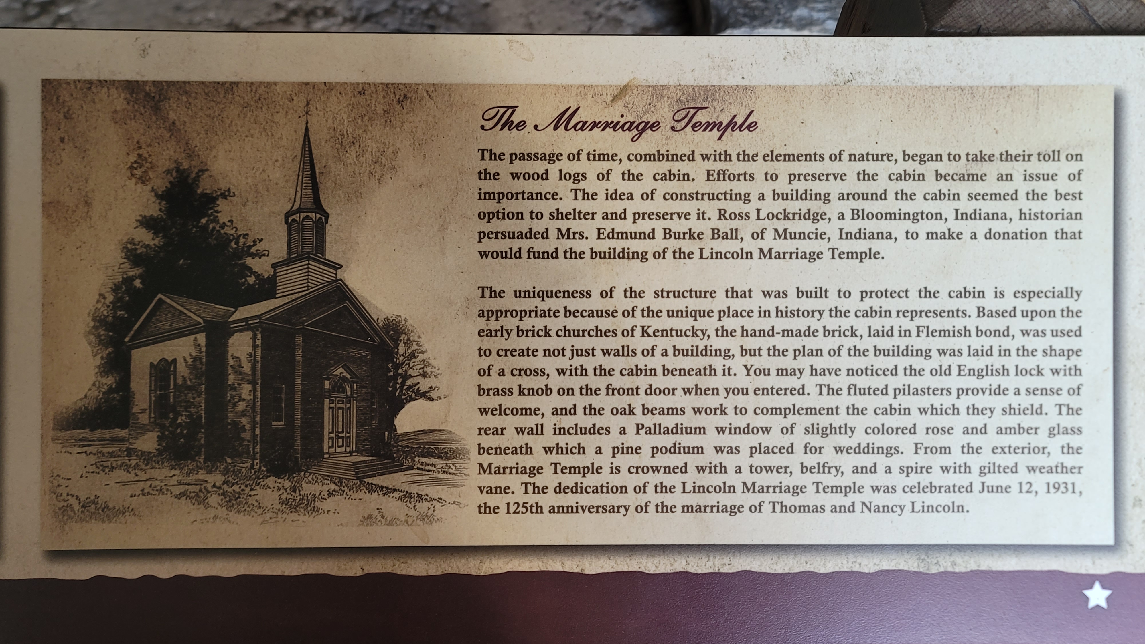 Visitors stepping inside the Temple experience a rare opportunity: to stand before the cabin where a young frontier couple took vows that would lead, two generations later, to the birth of one of America’s most influential presidents.